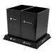 - Black cans with a modern, clean silhouette with black set base with recycle and trash labels