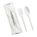 - Includes a fork, knife, spoon, napkin, and commercially compostable wrapper