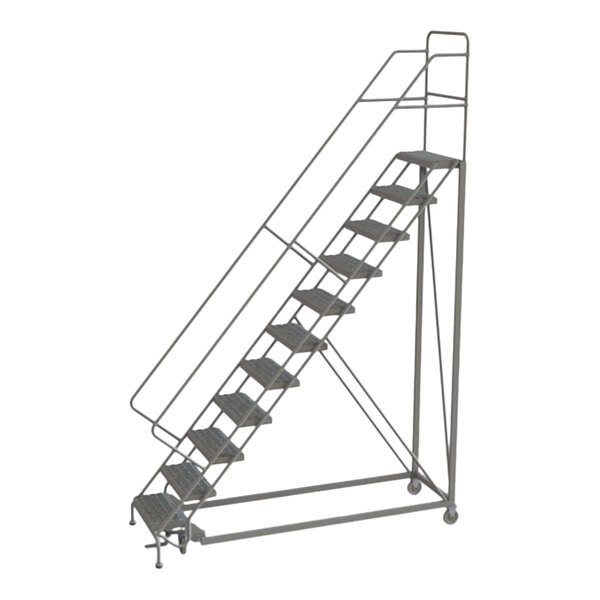Tri-Arc 11-Step Easy Climb 50-Degree Slope Rolling Safety Ladder with Perforated Tread and 24" Step Width KDEC111246 - 450 lb. Capacity