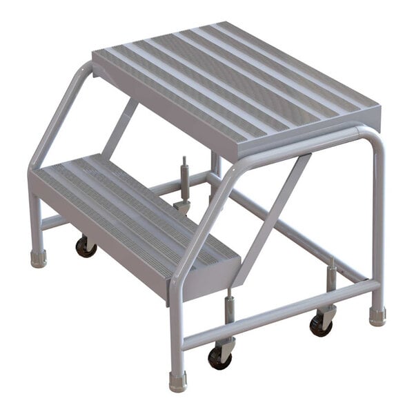 Tri-Arc 2-Step Aluminum Mobile Step Stool with Ribbed Tread, 16" Wide Steps, and 14" Deep Top Step WLAR002164 - 350 lb. Capacity