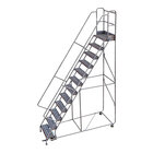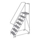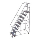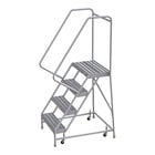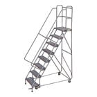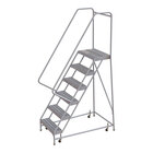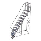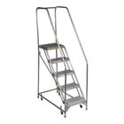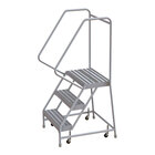 Equip your large commercial space or industrial facility with this Tri-Arc rolling safety ladder! Light weight yet durable, this ladder's aluminum frame makes it ideal for use in applications where portability is a must. The frame boasts 1 1/16" OD tubing and has a weight capacity of 350 lb. Its sleek mill finish and resistance to corrosion provide added resilience in environments where moisture or chemicals are present. The 32" high handrails and 56-degree climbing slope facilitate a safe ascent.