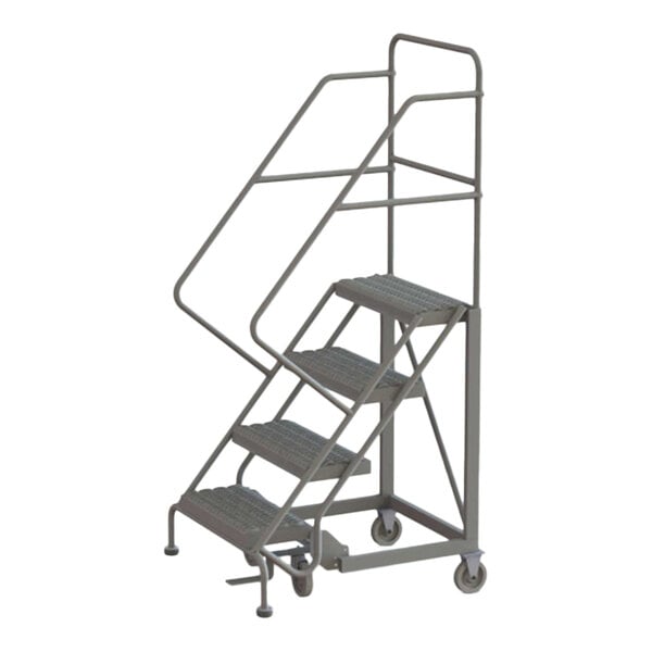Tri-Arc 4-Step Easy Climb 50-Degree Slope Rolling Safety Ladder with Serrated Tread and 24" Step Width KDEC104242 - 450 lb. Capacity