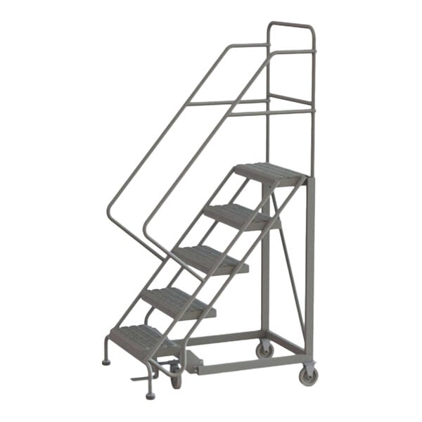 Tri-Arc 5-Step Easy Climb 50-Degree Slope Rolling Safety Ladder with Serrated Tread and 24" Step Width KDEC105242 - 450 lb. Capacity
