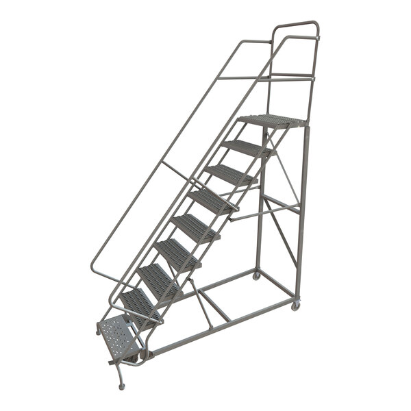 Tri-Arc 9-Step Easy Climb 50-Degree Slope Rolling Safety Ladder with Serrated Tread and 24" Step Width KDEC109242 - 450 lb. Capacity