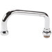 This T&S 059X 6" swing faucet spout has a swinging nozzle, it has a 2" rise and is made of stainless steel. It also has an aerator male thread with a steam regulator.
