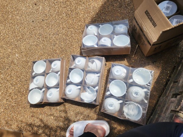 High quality porcelain cups, nice bright white, no fading so far, looks like we will be using these for a long time without any issues.