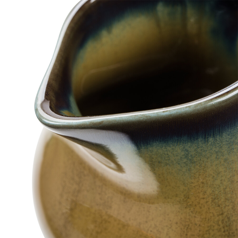 This creamer may be used in combination with other size and color choices in the TuxTrendz Artisan line to create the perfect place setting at your restaurant, cafe, pub, or lounge. Durable and resistant to wear, this dish offers a creative backdrop to whatever foods you wish to serve. The rich, sandy palette paired with the natural edge gives a hand-thrown appearance to enhance the rustic look. Whether needed at a diner, restaurant, or high-end bar, the Mojave line is the perfect, eye-catching choice.