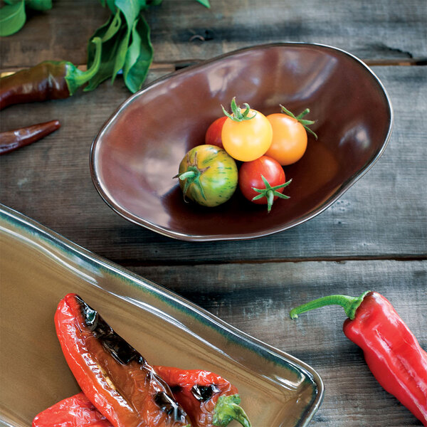 This bowl may be used in combination with other size and color choices in the TuxTrendz Artisan line to create the perfect place setting at your restaurant, cafe, pub, or lounge. Durable and resistant to wear, this dish offers a creative backdrop to whatever foods you wish to serve. The rich, russet palette paired with the natural edge gives a hand-thrown appearance to enhance the rustic look. Whether needed at a diner, restaurant, or high-end bar, the Red Rock line is the perfect, eye-catching choice.