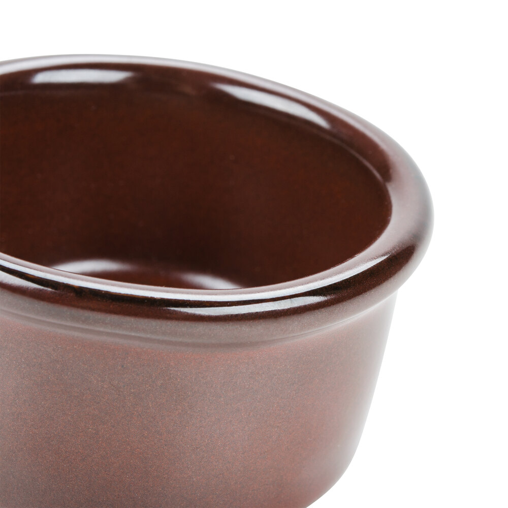 This ramekin may be used in combination with other size and color choices in the TuxTrendz Artisan line to create the perfect place setting at your restaurant, cafe, pub, or lounge. Durable and resistant to wear, this dish offers a creative backdrop to whatever foods you wish to serve. The rich, russet palette paired with the natural edge gives a hand-thrown appearance to enhance the rustic look. Whether needed at a diner, restaurant, or high-end bar, the Red Rock line is the perfect, eye-catching choice.
