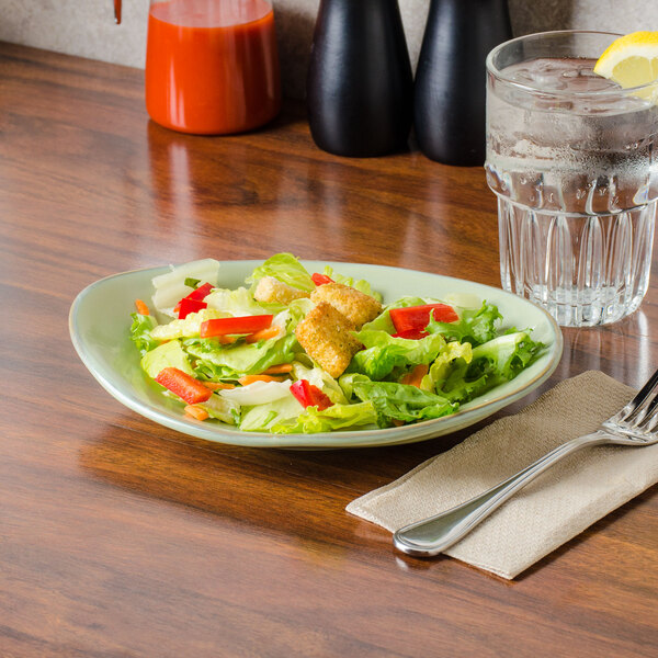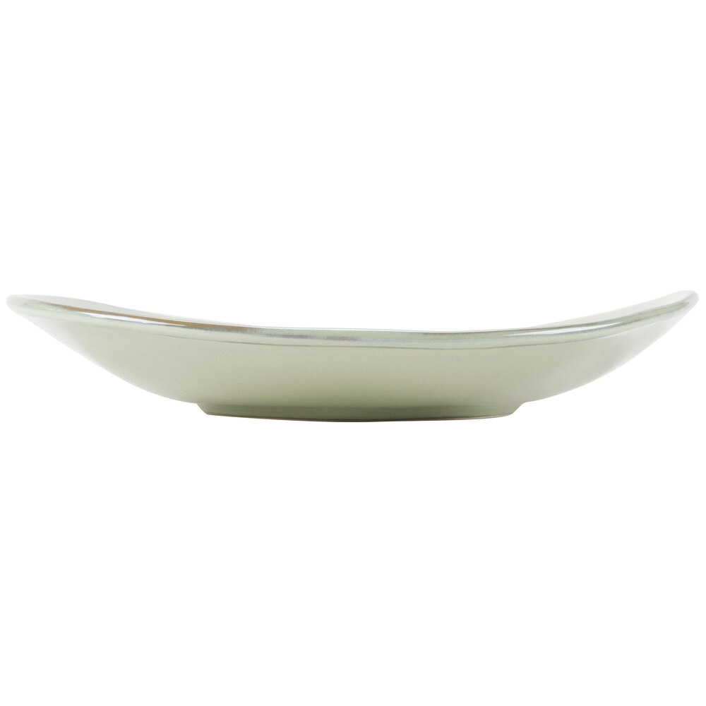 Featuring a rustic-casual style that's perfect for use in your cafe, restaurant, or lodge, this plate's natural color is sure to complement any decor. You can even combine with other colors and sizes (sold separately) to create an exciting, layered tabletop presentation. The soft, sage palette paired with the natural edge gives a hand-thrown appearance to enhance the rustic look.