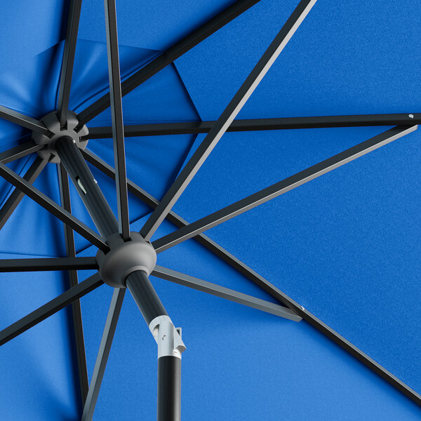 View All ItemsEnjoy the outdoors under the pleasant shade of this Lancaster Table & Seating 9' lake blue crank lift auto tilt black aluminum umbrella!