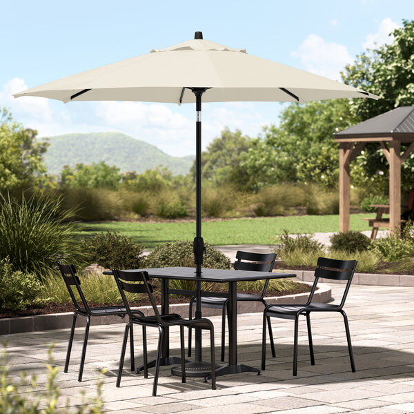 Lancaster Table & Seating 9' Round Shell Beige Crank Lift Auto Tilt Black Aluminum Umbrella