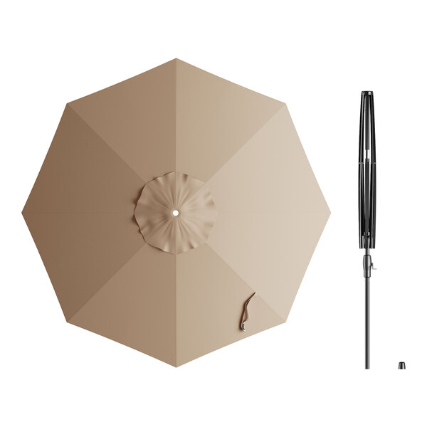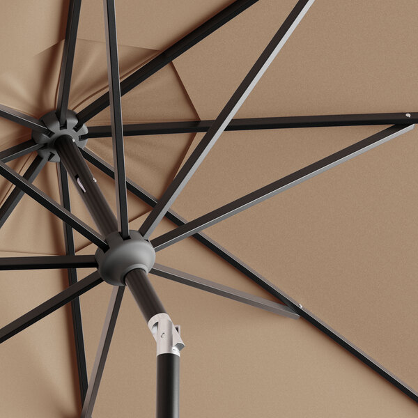 View All ItemsEnjoy the outdoors under the pleasant shade of this Lancaster Table & Seating 9' tundra tan crank lift auto tilt black aluminum umbrella!