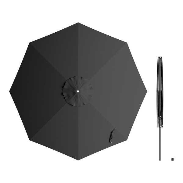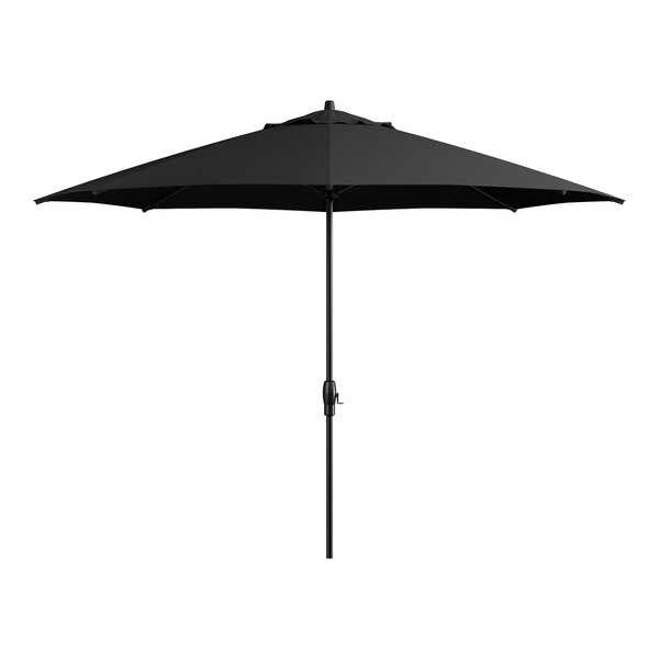 Lancaster Table & Seating 11' Round Raven Black Crank Lift Black Aluminum Umbrella
