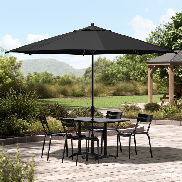 Enjoy the outdoors under the pleasant shade of this Lancaster Table & Seating 11' raven black crank lift black aluminum umbrella!