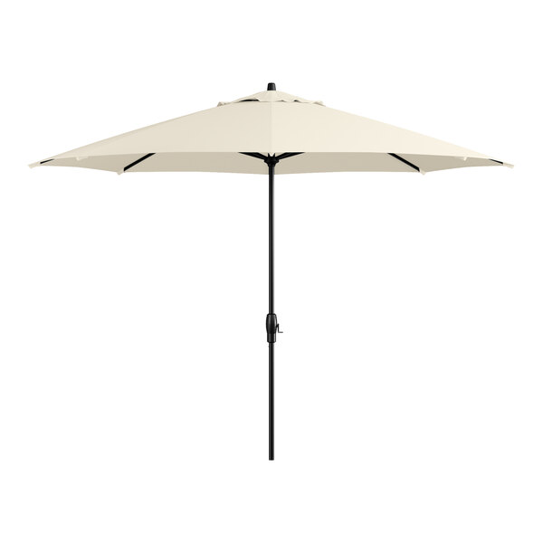 Lancaster Table & Seating 11' Round Shell Beige Crank Lift Black Aluminum Umbrella