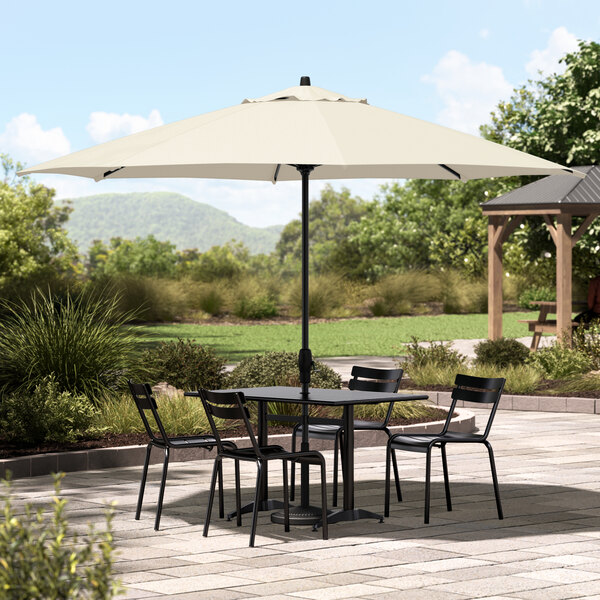 Enjoy the outdoors under the pleasant shade of this Lancaster Table & Seating 11' shell beige crank lift black aluminum umbrella!