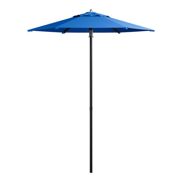 Lancaster Table & Seating 6' Round Lake Blue Push Lift Black Aluminum Umbrella