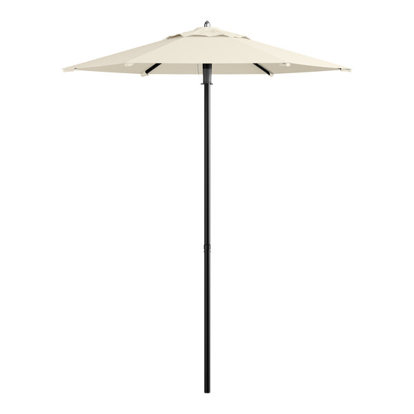 Lancaster Table & Seating 6' Round Shell Beige Push Lift Black Aluminum Umbrella