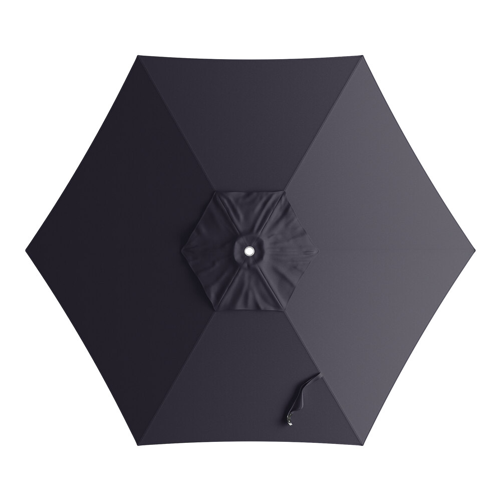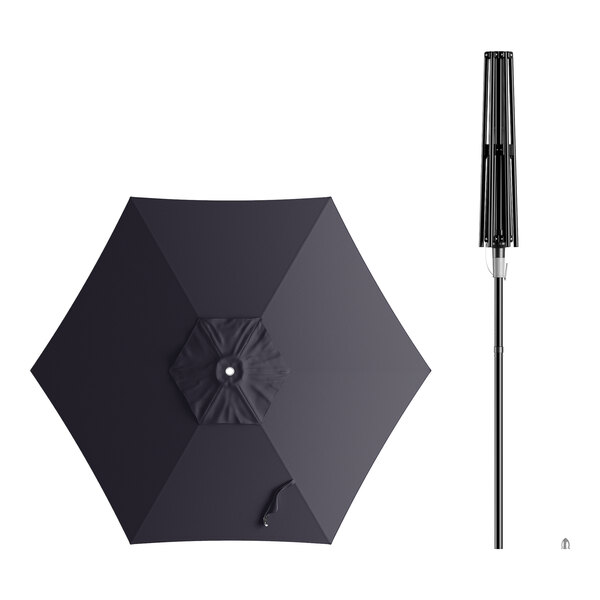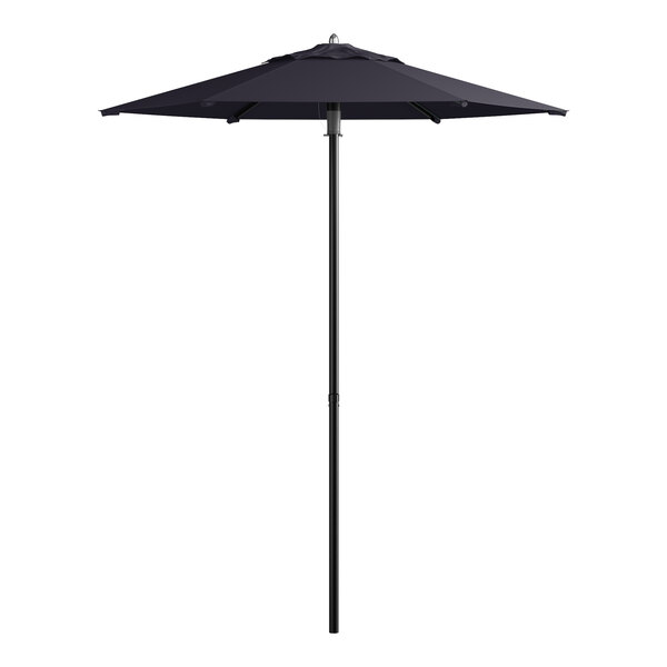 Lancaster Table & Seating 6' Round Midnight Navy Push Lift Black Aluminum Umbrella