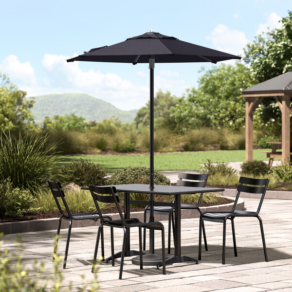 Enjoy the outdoors under the pleasant shade of this Lancaster Table & Seating 6' midnight navy push lift black aluminum umbrella!