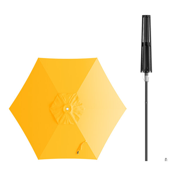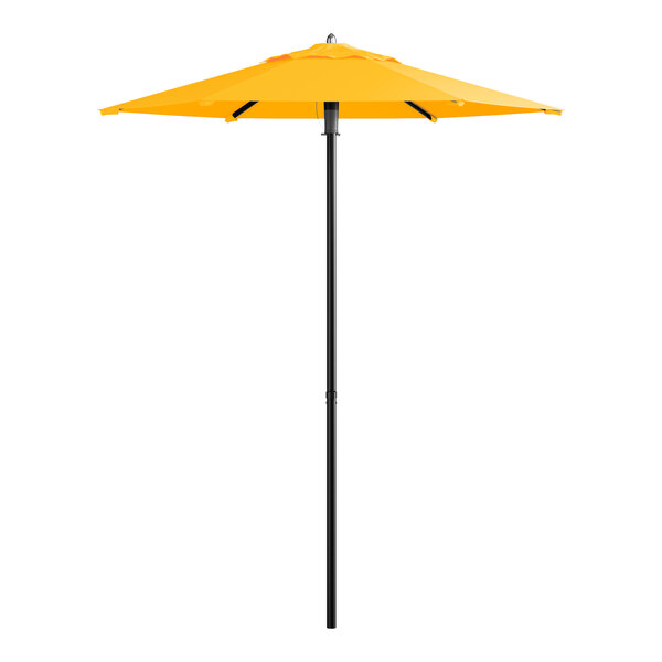 Lancaster Table & Seating 6' Round Sunflower Yellow Push Lift Black Aluminum Umbrella