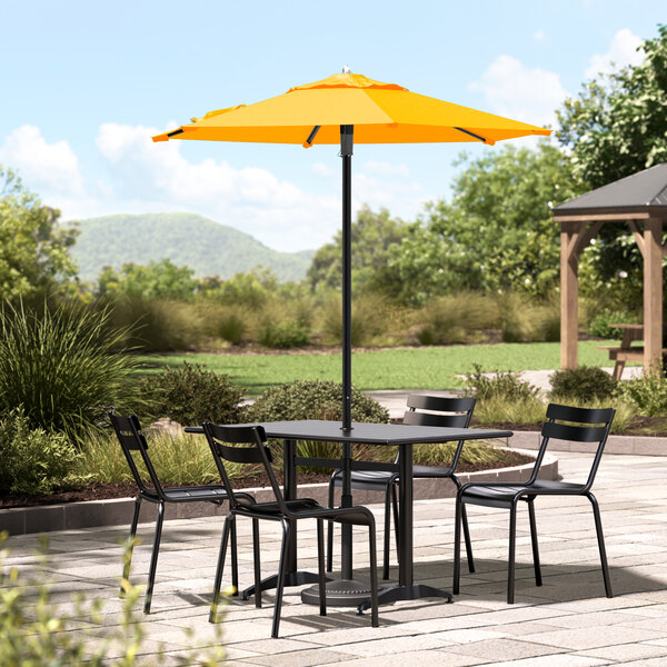 Enjoy the outdoors under the pleasant shade of this Lancaster Table & Seating 6' sunflower yellow push lift black aluminum umbrella!
