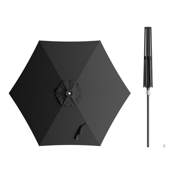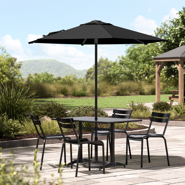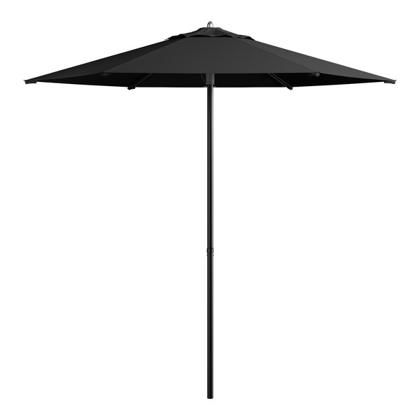 Lancaster Table & Seating 7 1/2' Round Raven Black Push Lift Black Aluminum Umbrella