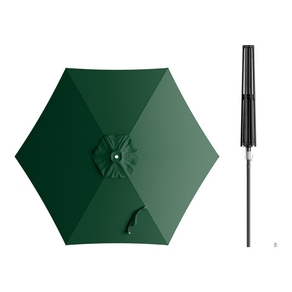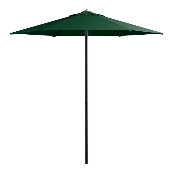 Lancaster Table & Seating 7 1/2' Round Forest Green Push Lift Black Aluminum Umbrella