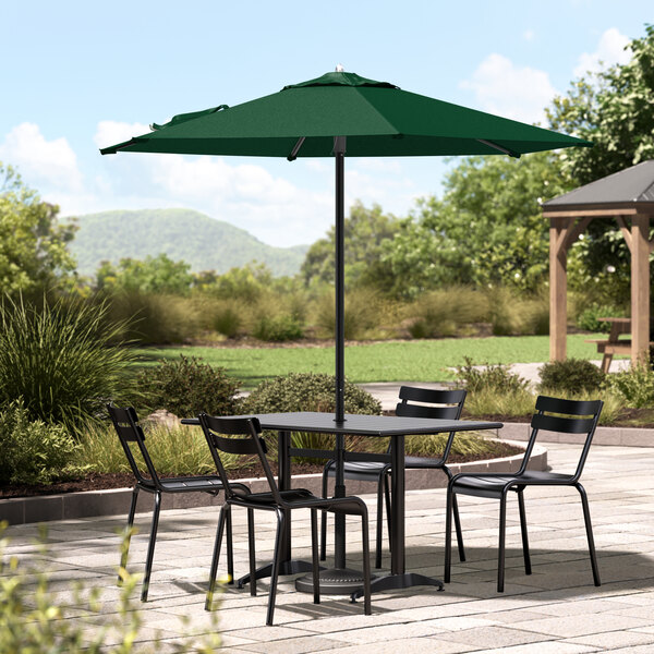 Enjoy the outdoors under the pleasant shade of this Lancaster Table & Seating 7 1/2' forest green push lift black aluminum umbrella!
