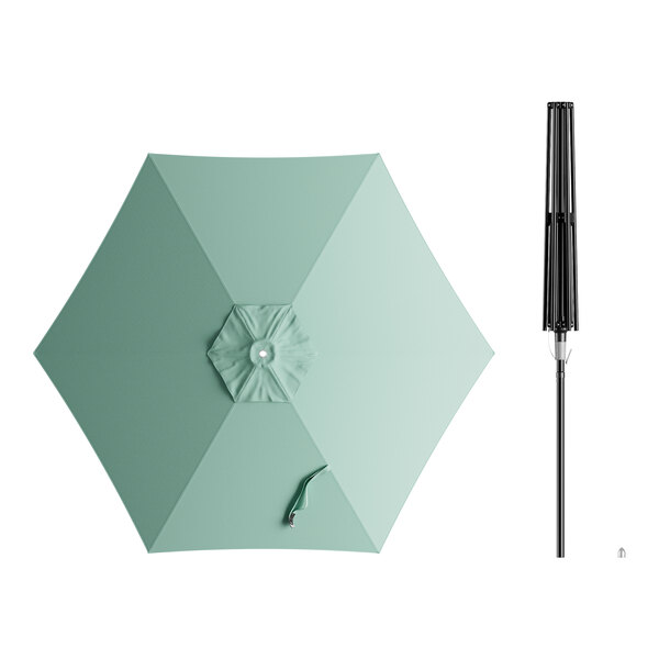 Lancaster Table & Seating 7 1/2' Round Glacier Blue Push Lift Black Aluminum Umbrella