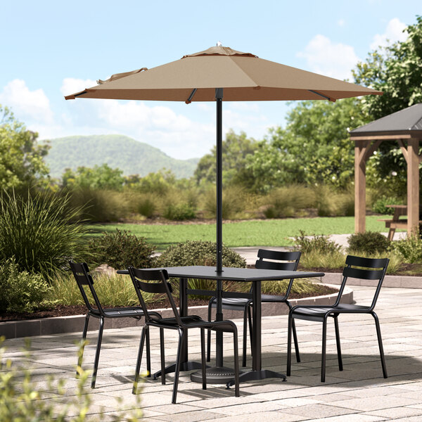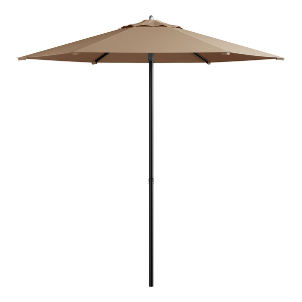 Lancaster Table & Seating 7 1/2' Round Tundra Tan Push Lift Black Aluminum Umbrella