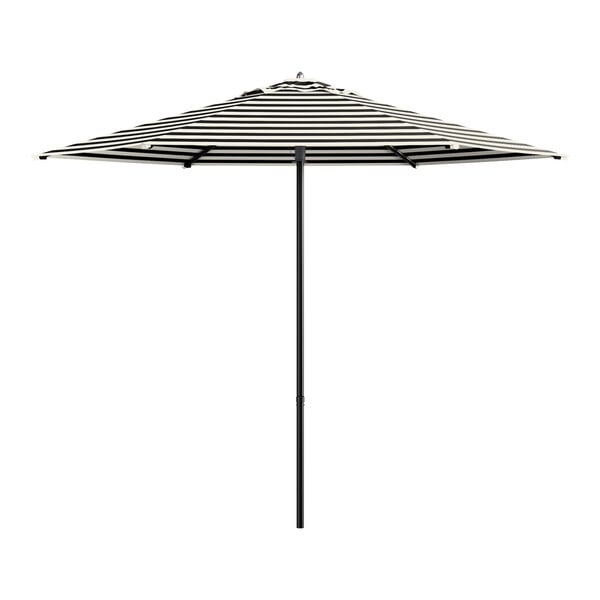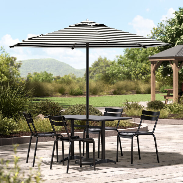Lancaster Table & Seating 9' Round Black and White Stripe Push Lift Black Aluminum Umbrella