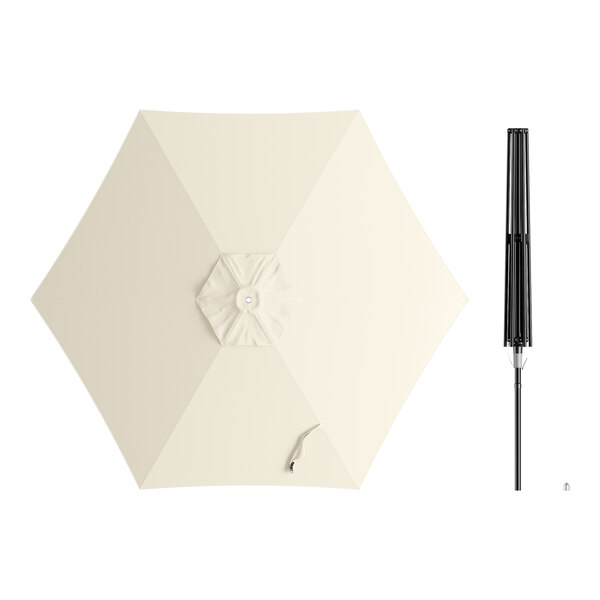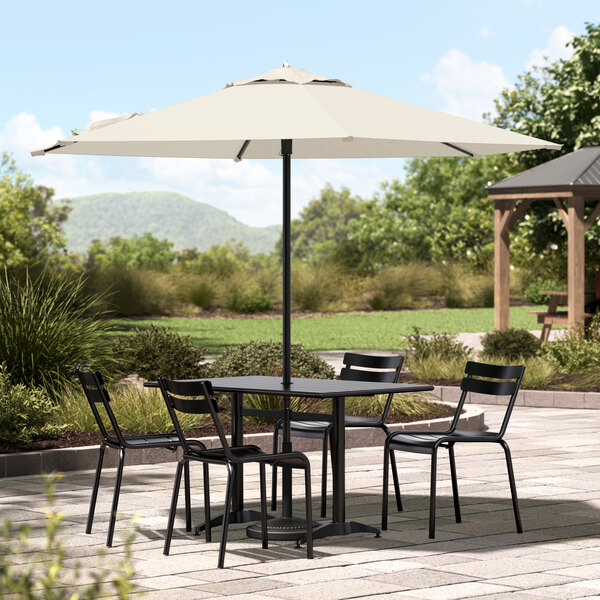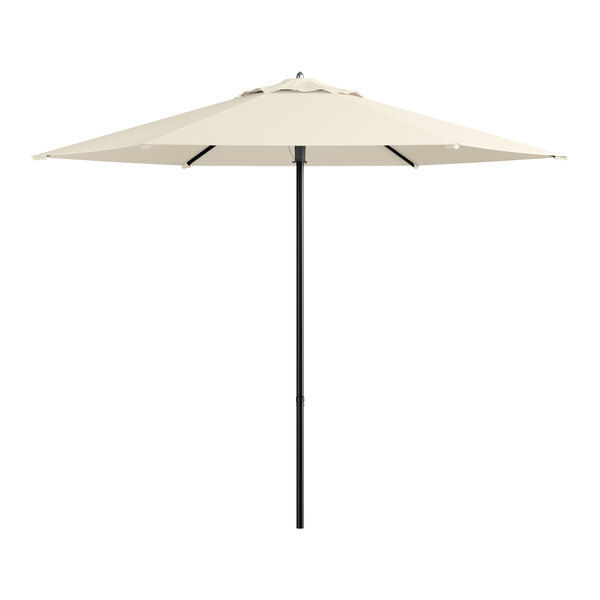 Lancaster Table & Seating 9' Round Shell Beige Push Lift Black Aluminum Umbrella