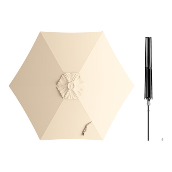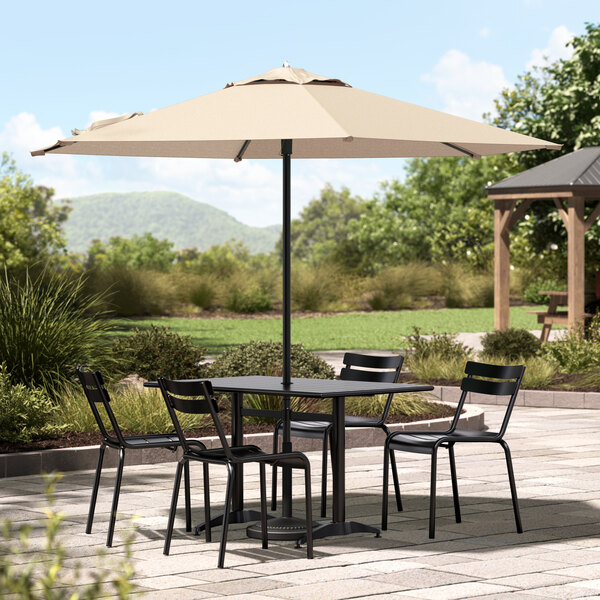 Lancaster Table & Seating 9' Round Sand Push Lift Black Aluminum Umbrella