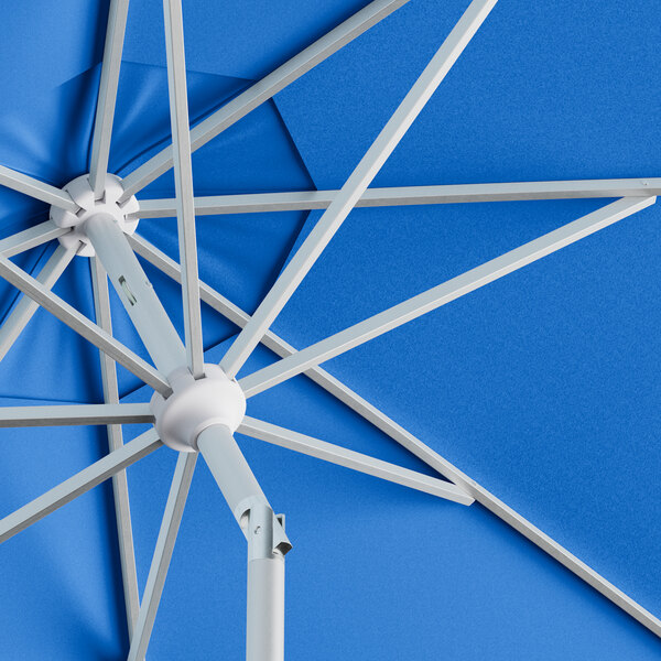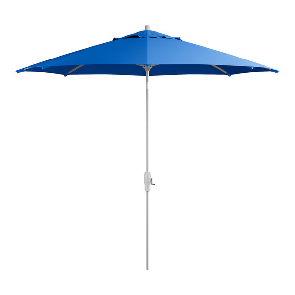 View All ItemsEnjoy the outdoors under the pleasant shade of this Lancaster Table & Seating 9' lake blue crank lift silver aluminum auto tilt umbrella!