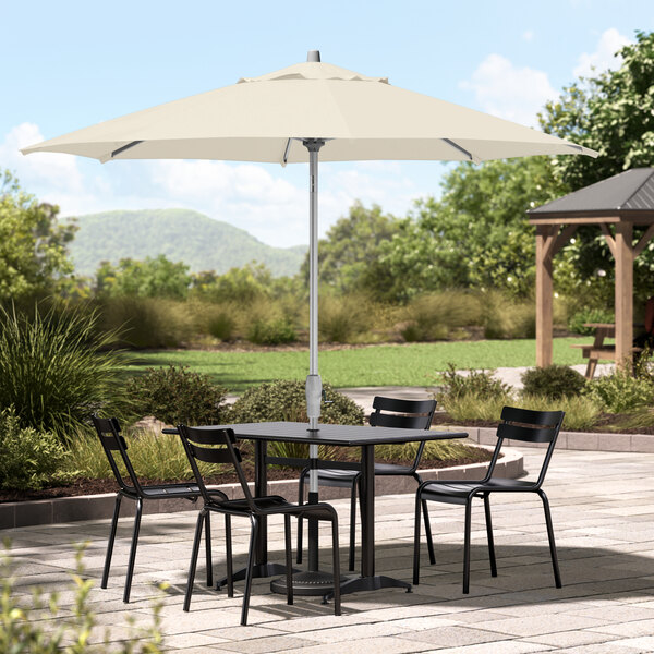 This umbrella's silver powder-coated aluminum frame is built to withstand consistent use in your establishment. Its 1 1/2" pole diameter makes it compatible with select umbrella bases (sold separately), and you can prolong the life of your canopy with a compatible umbrella cover (sold separately). Reach for this Lancaster Table & Seating umbrella to enhance your outdoor space and keep guests happy and comfortable!