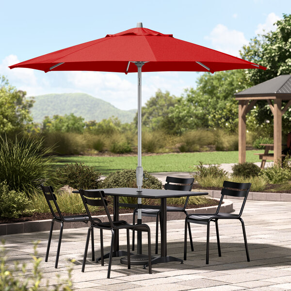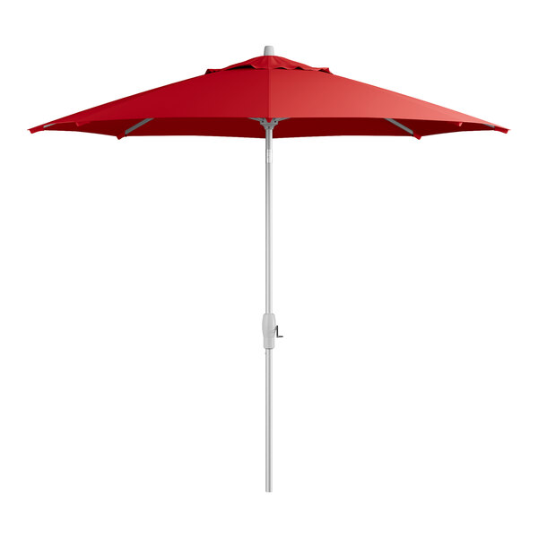 Lancaster Table & Seating 9' Round Carnation Red Crank Lift Auto Tilt Silver Aluminum Umbrella