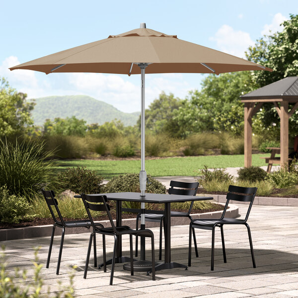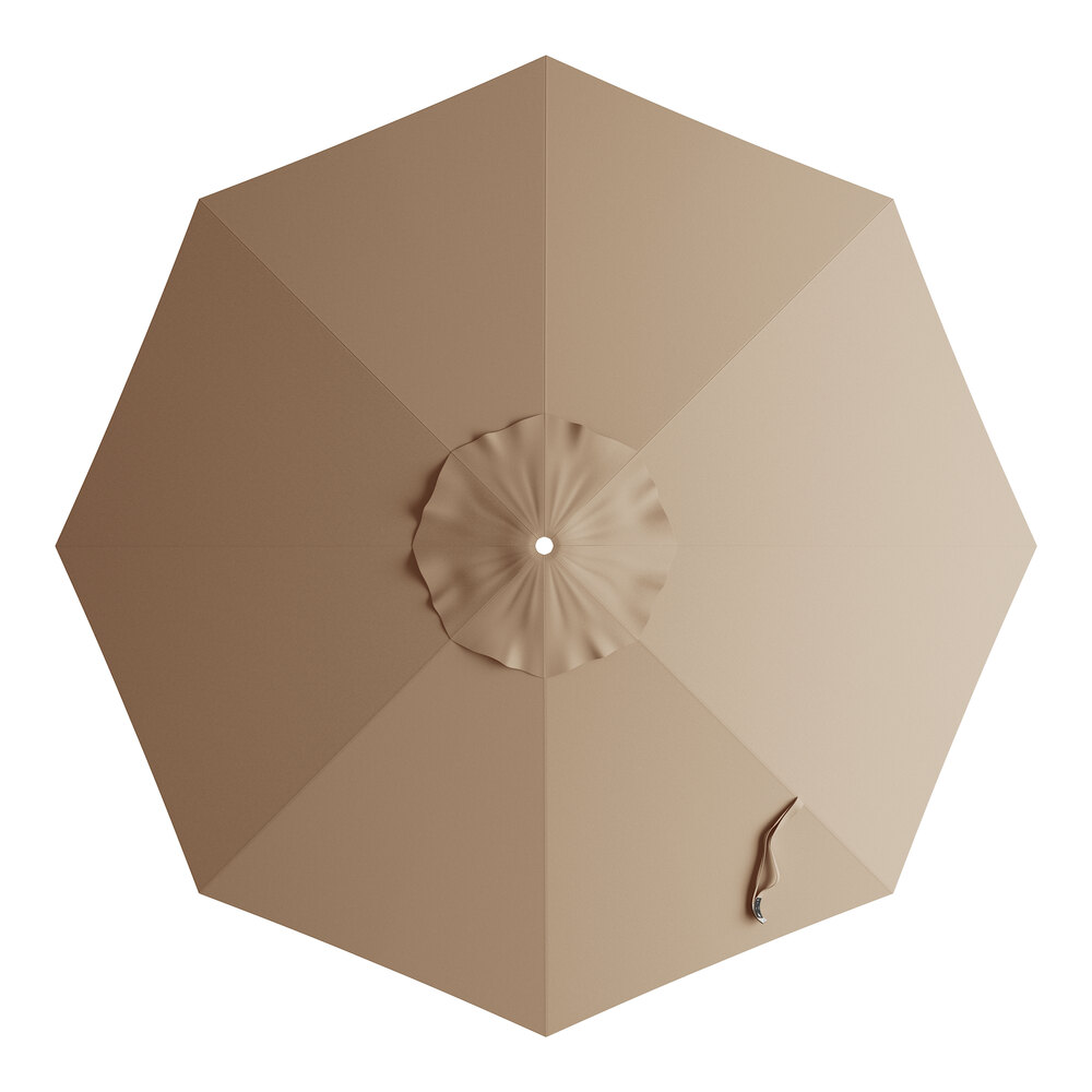 View All ItemsEnjoy the outdoors under the pleasant shade of this Lancaster Table & Seating 9' tundra tan crank lift silver aluminum auto tilt umbrella!