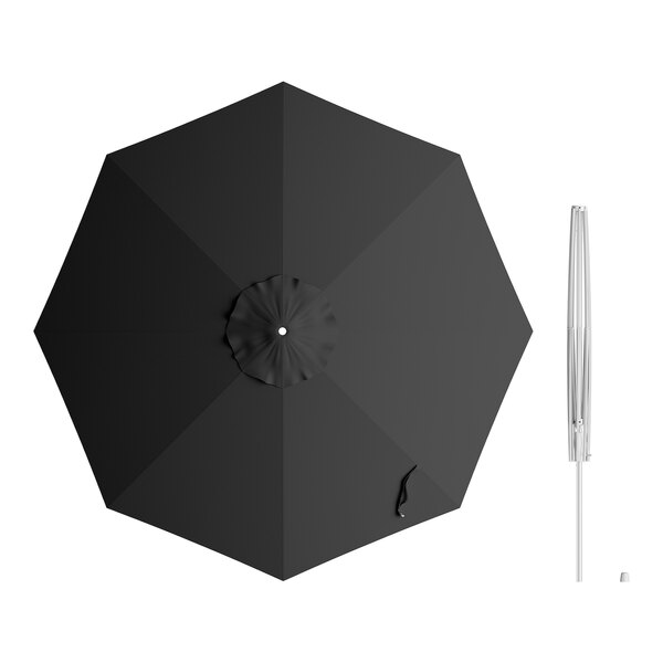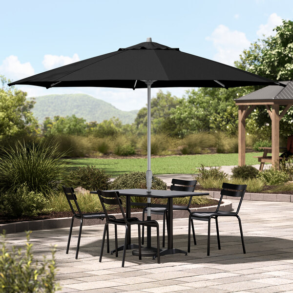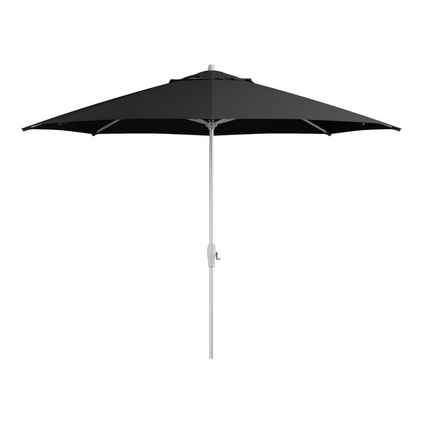 Lancaster Table & Seating 11' Round Raven Black Crank Lift Silver Aluminum Umbrella