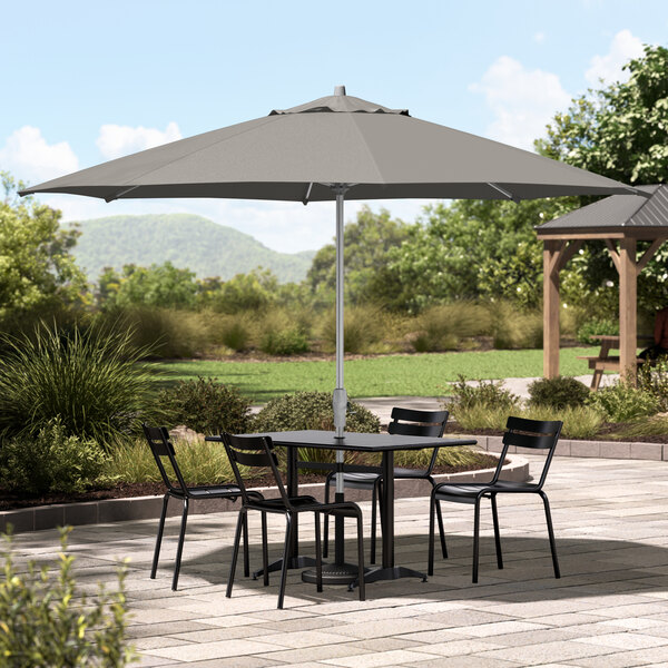 Lancaster Table & Seating 11' Round Fog Gray Crank Lift Silver Aluminum Umbrella