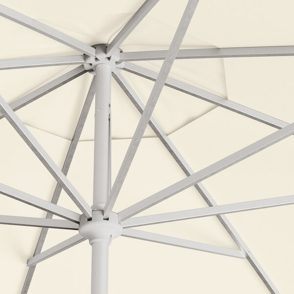 This umbrella's silver powder-coated aluminum frame is built to withstand consistent use in your establishment. Its 1 1/2" pole diameter makes it compatible with select umbrella bases (sold separately), and you can prolong the life of your canopy with a compatible umbrella cover (sold separately). Reach for this Lancaster Table & Seating umbrella to enhance your outdoor space and keep guests happy and comfortable!