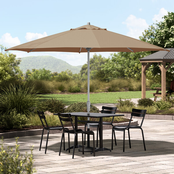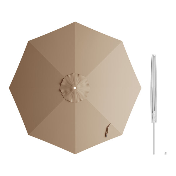 Lancaster Table & Seating 11' Round Tundra Tan Crank Lift Silver Aluminum Umbrella