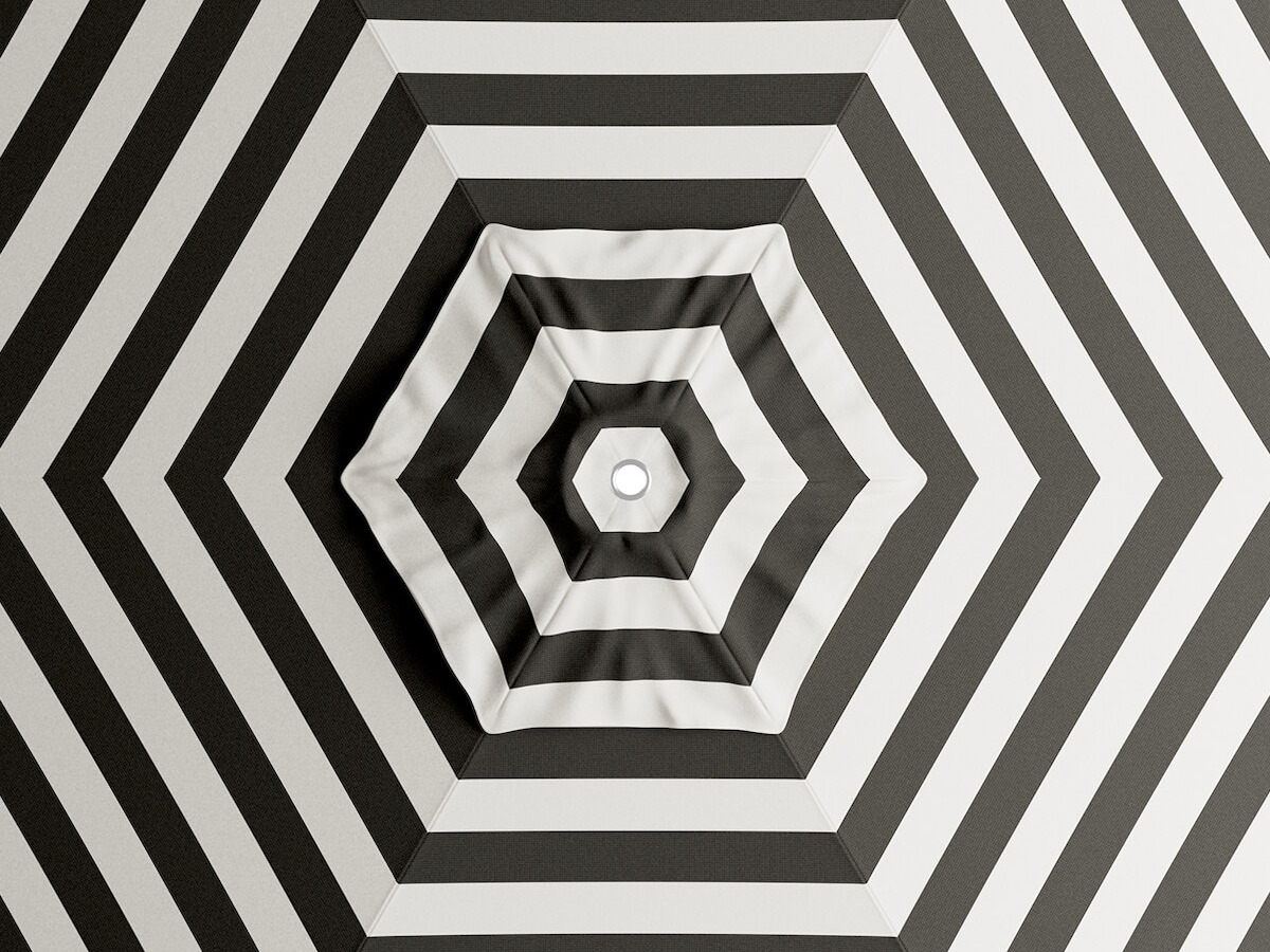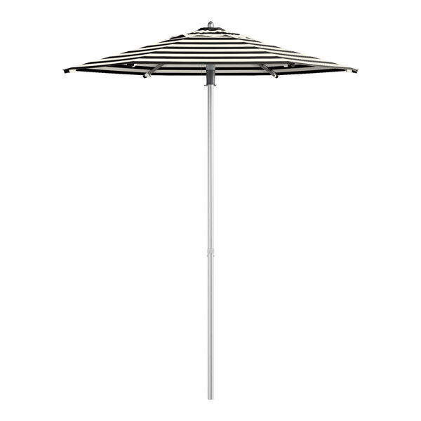 Lancaster Table & Seating 6' Round Black and White Stripe Push Lift Silver Aluminum Umbrella