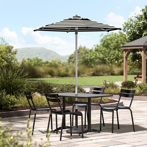 Enjoy the outdoors under the pleasant shade of this Lancaster Table & Seating 6' black and white stripe push lift silver aluminum umbrella!