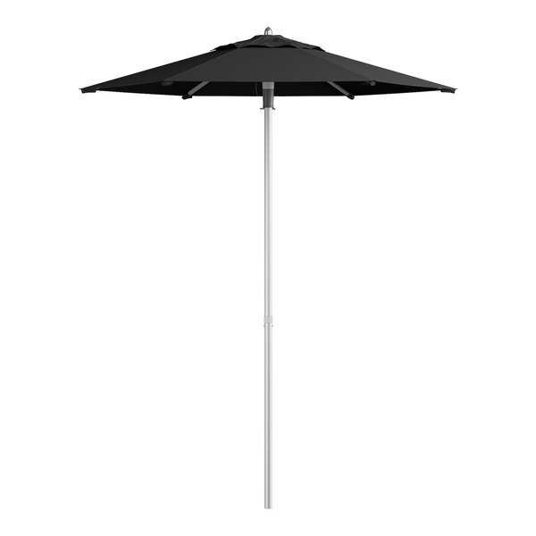 Lancaster Table & Seating 6' Round Raven Black Push Lift Silver Aluminum Umbrella
