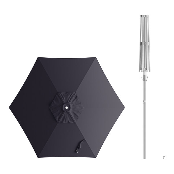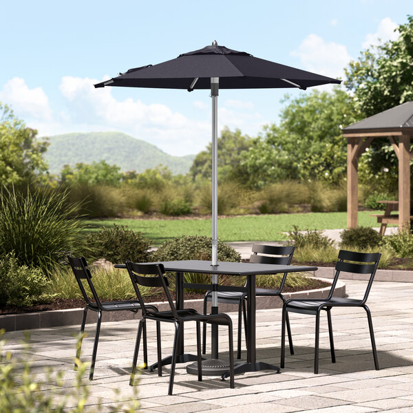 Lancaster Table & Seating 6' Round Midnight Navy Push Lift Silver Aluminum Umbrella