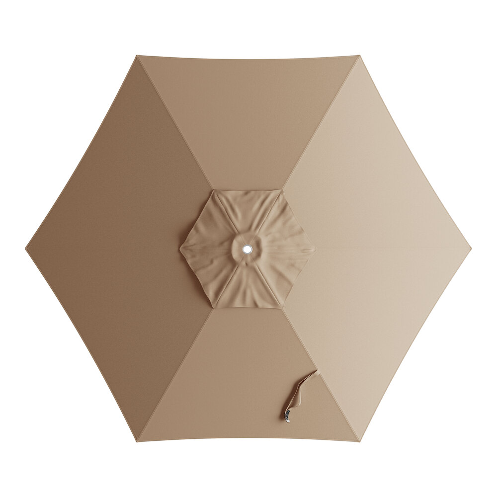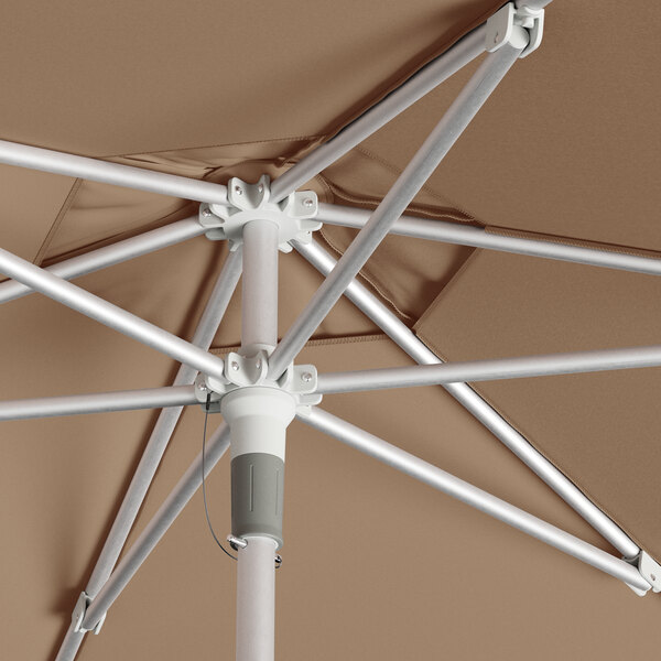 Lancaster Table & Seating 6' Round Tundra Tan Push Lift Silver Aluminum Umbrella
