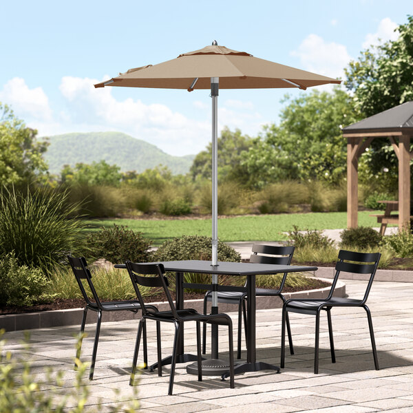 This umbrella's silver powder-coated aluminum frame is built to withstand consistent use in your establishment. Its 1 1/2" pole diameter makes it compatible with select umbrella bases (sold separately), and you can prolong the life of your canopy with a compatible umbrella cover (sold separately). Reach for this Lancaster Table & Seating umbrella to enhance your outdoor space and keep guests happy and comfortable!