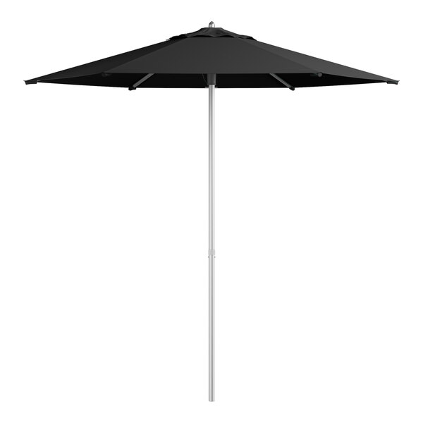 Lancaster Table & Seating 7 1/2' Round Raven Black Push Lift Silver Aluminum Umbrella